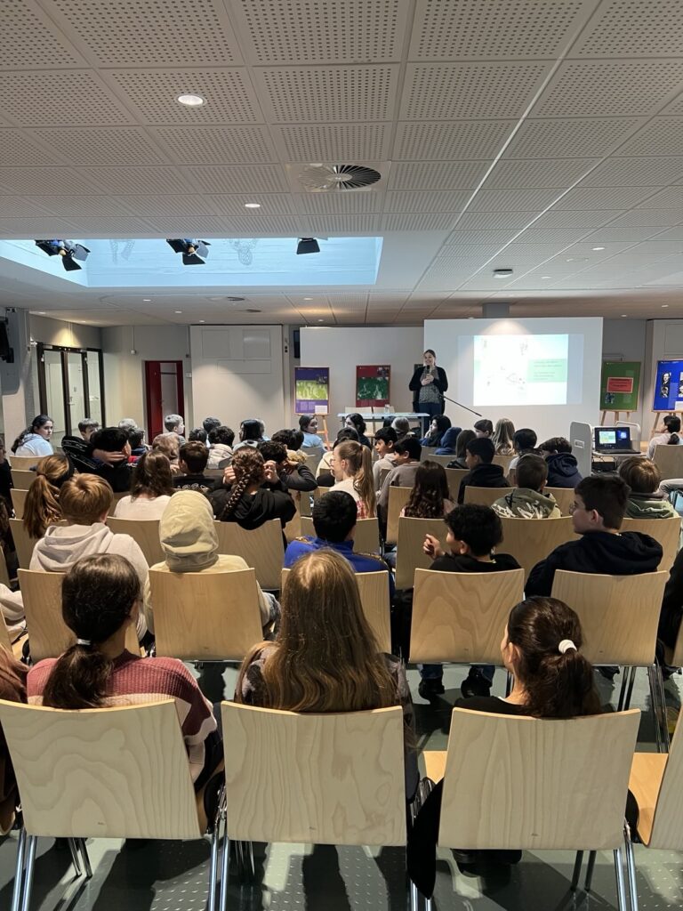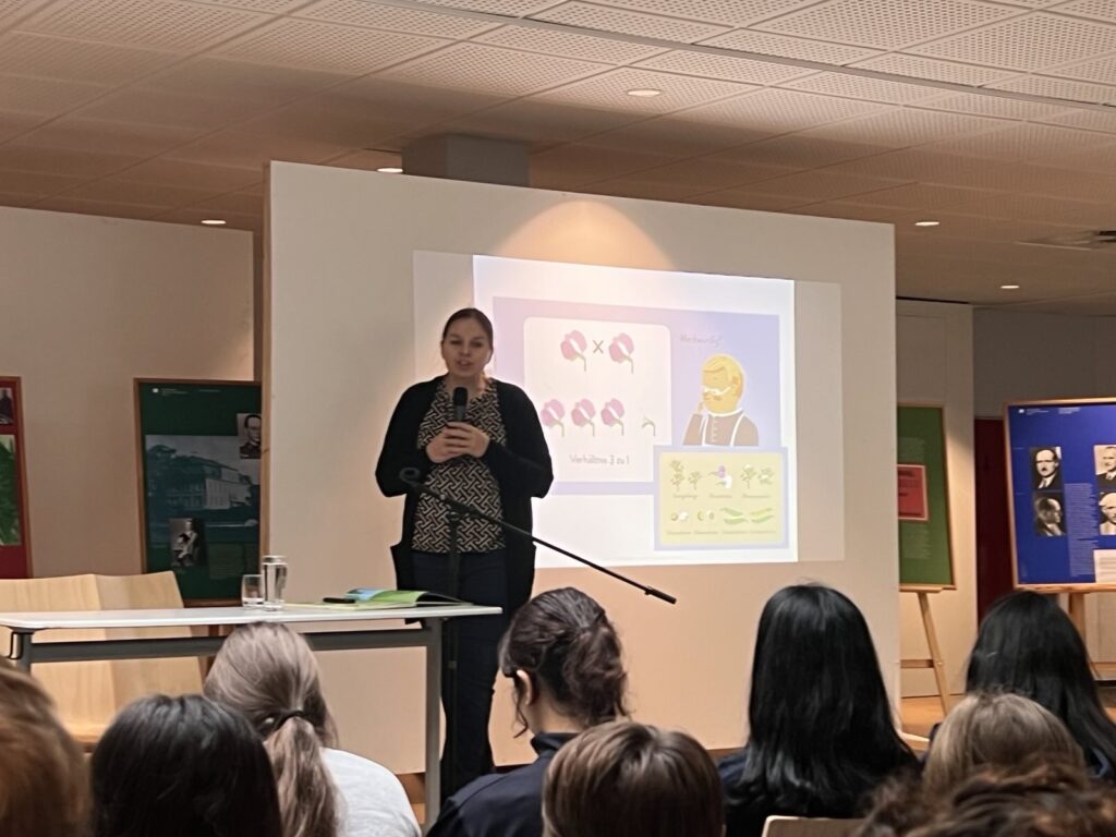 „Mir hat die Lesung sehr gut gefallen. Ich durfte auf die Bühne und auf einen Tisch steigen und eine Strickleiter halten. Es war interessant zu hören, wer alles zur DNA geforscht hat. Sehr cool waren die Bilder und das Quiz.“ (Reyan)