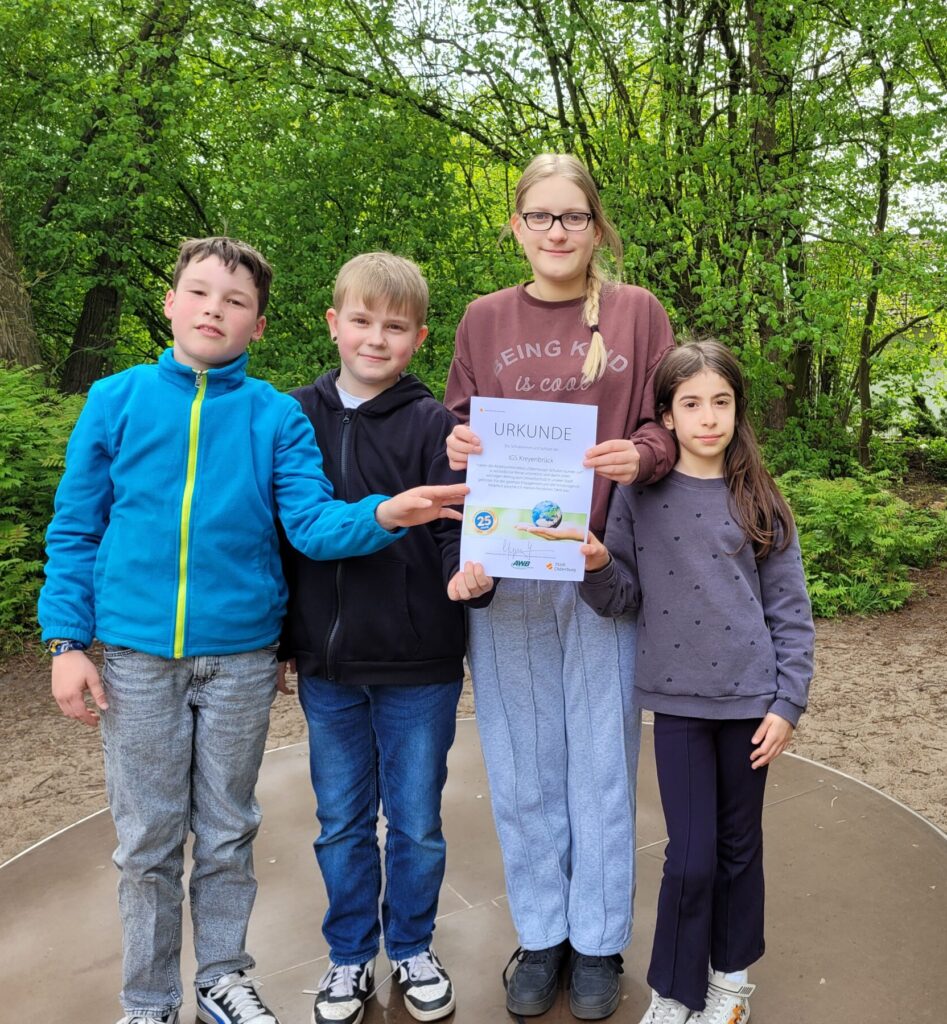So lautet der Dank des Oberbürgermeisters, Jürgen Kroogmann, auf der Urkunde, die die Schulen  für ihren Einsatz erhalten haben. Insgesamt sind über 15 Tonnen Müll am Aktionstag aufgesammelt und entsorgt worden! Tatkräftig unterstützt haben die 10 Klassen der Jahrgänge 5 und 6 der IGS Kreyenbrück.
