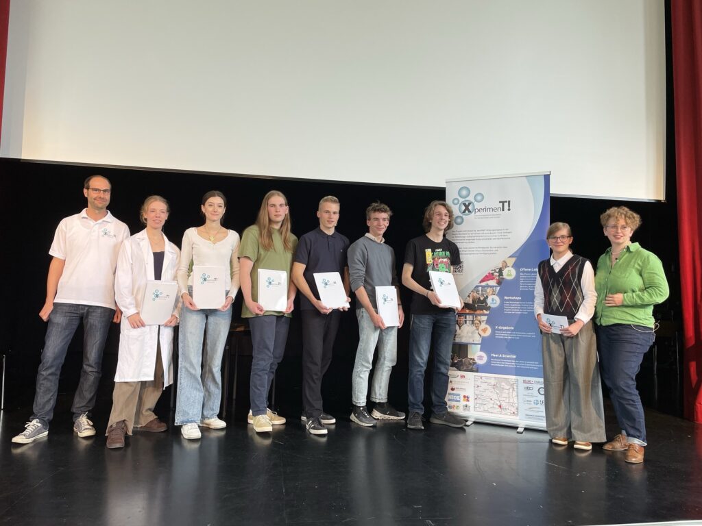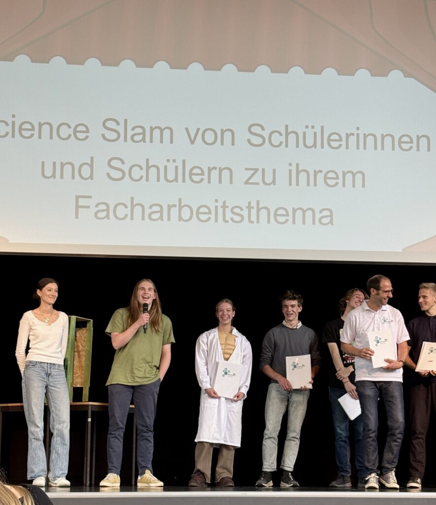 Das gesamte Tutorium von Jona war an diesem Tag in der Universität, um ihn bei seinem Vortrag anzufeuern und zu unterstützen. Neben seinem Beitrag wurden weitere Themen aus den Bereichen Mathematik, Informatik, Naturwissenschaften und Technik vorgestellt – von Reaktionszeiten über künstliche Intelligenz bis hin zu medizinischen und umweltbezogenen Fragestellungen.